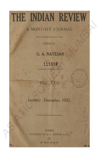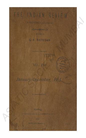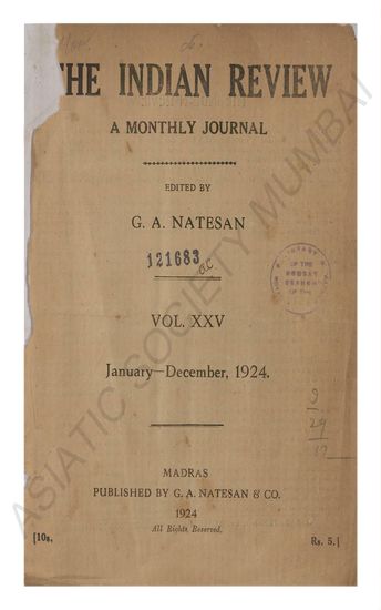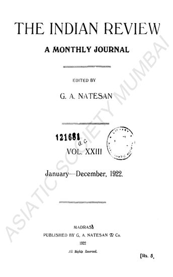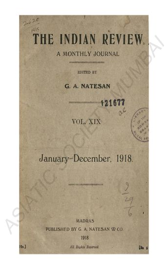 | Subject | : | India South Asia Natesan, G. A., 1873-1948 Politics and government |