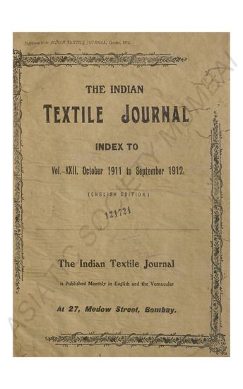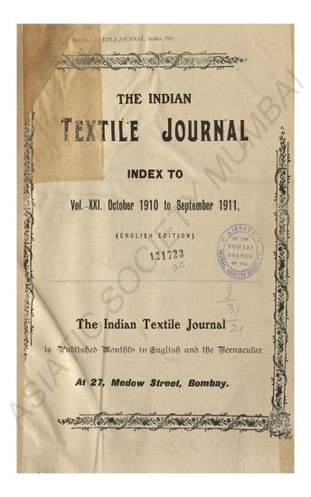 | Series | : | Supplement to the Indian Textile Journal, 15th October, 1909. |