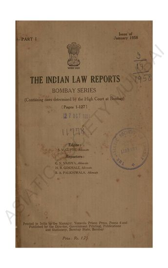 | Subject | : | Law reports, digests, etc India--Maharashtra India India--Mumbai |