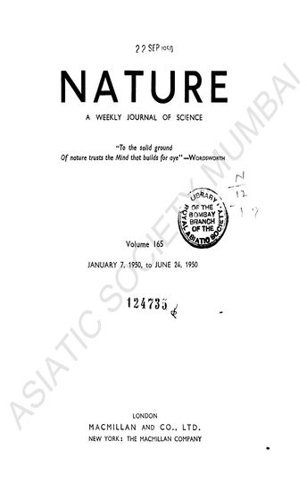 Nature, Volume 165, January 7, 1950, to June 24, 1950