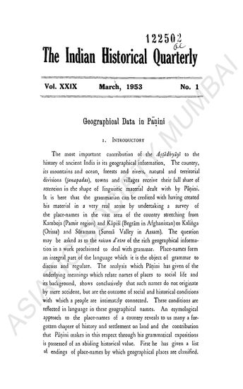Indian Historical Quarterly. Vol XXIX. March, 1953…