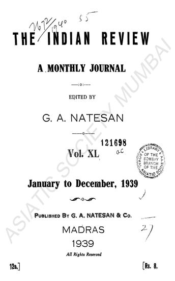 Indian Review A Monthly Journal. Vol XL. January - Dece ...