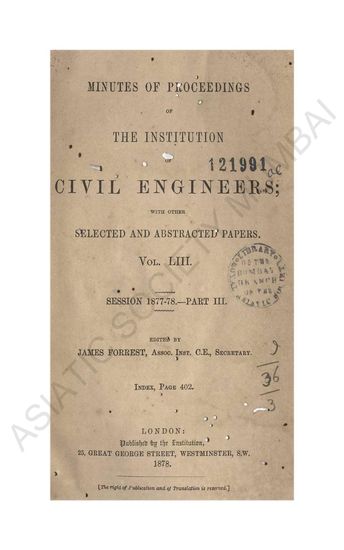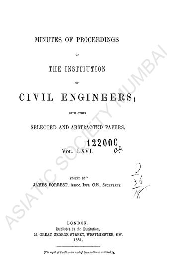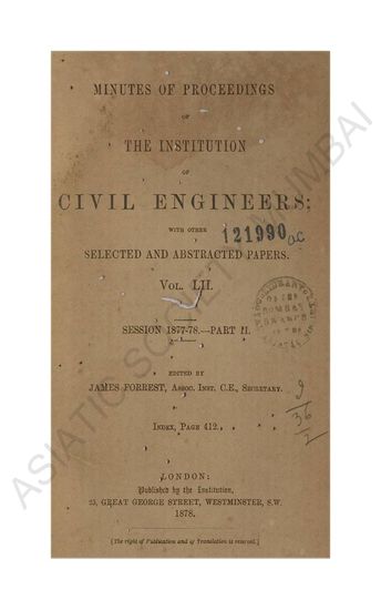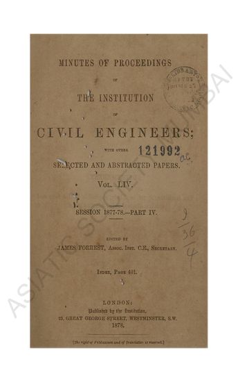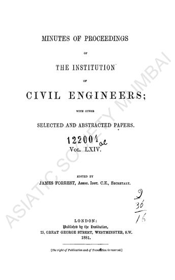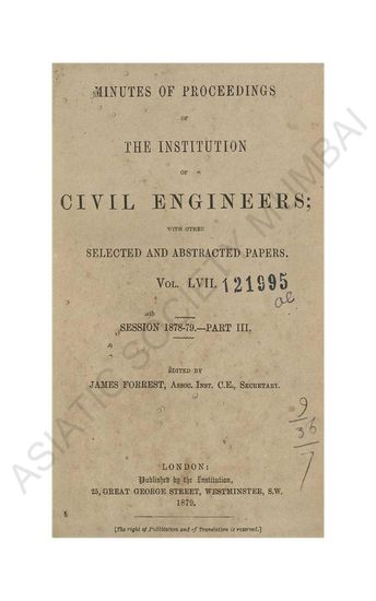 | Subject | : | Civil Engineering; Institution of Civil Engineers (Great Britain); Great Britain; Engineering |