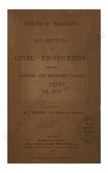 | Subject | : | Civil Engineering; Institution of Civil Engineers (Great Britain); Great Britain; Engineering |