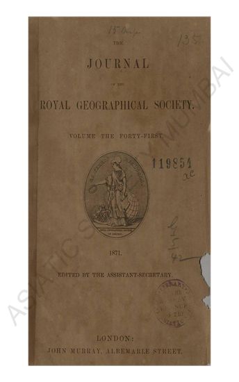 | Subject | : | Geography--Societies; etc; Royal Geographical Society (Great Britain); Geography--Periodicals |