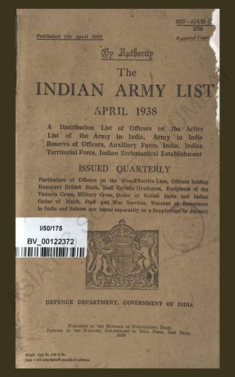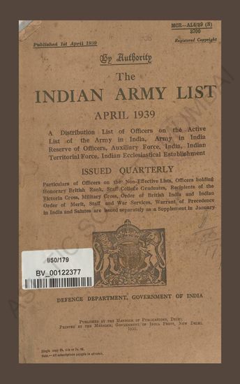 | Subject | : | India; Army; Great Britain; Army |