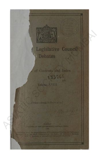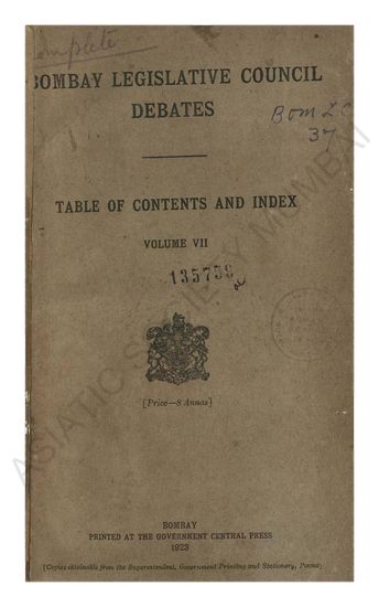 | Subject | : | India--Bombay (State); Politics and government; Legislature; Legislative Council; Bombay (Presidency); Politics and government; India Bombay (State), |