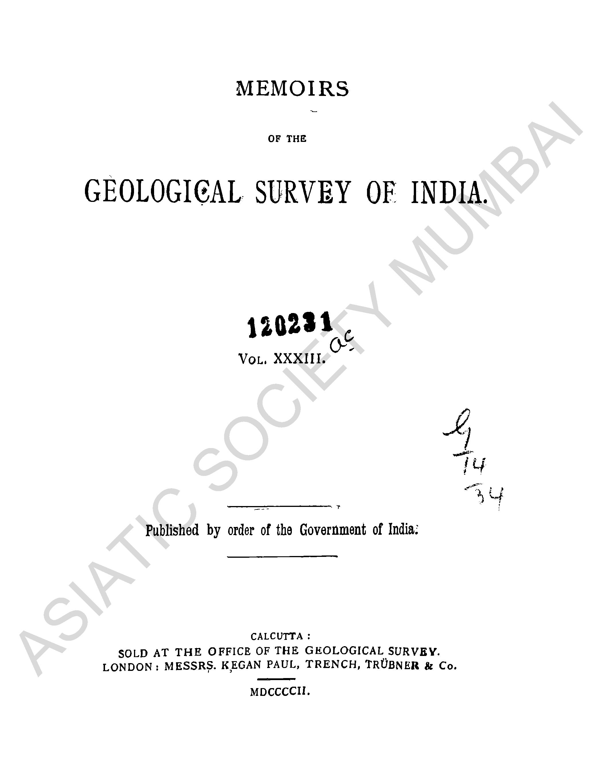 | Subject | : | India; Geology; Mines and mineral resources; Earthquakes; Geological Survey of India |