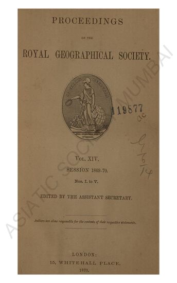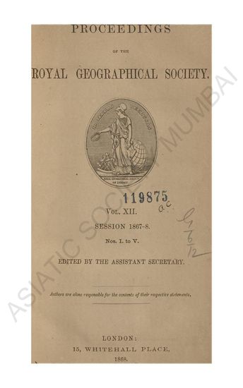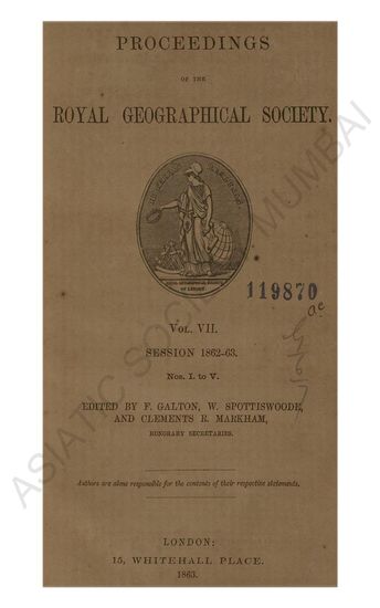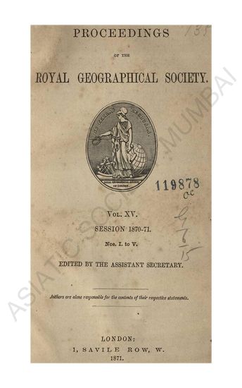| Subject | : | Voyages and travels; Geography; Royal Geographical Society (Great Britain) |