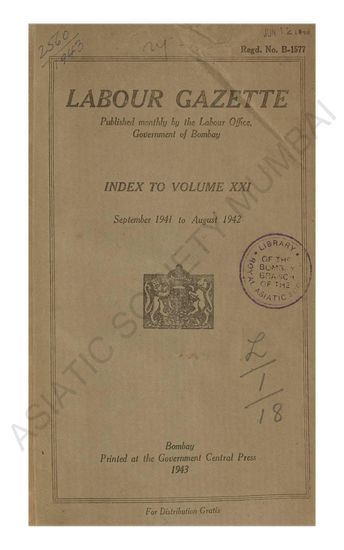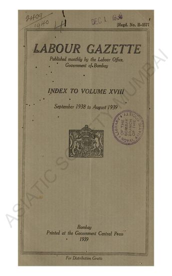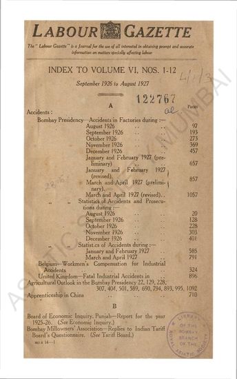 Labour Gazette, Index to Volume V, nos. 1-12.