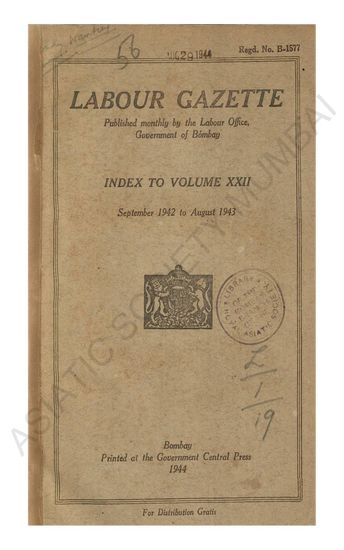 Labour Gazette, Index to Volume V, nos. 1-12.