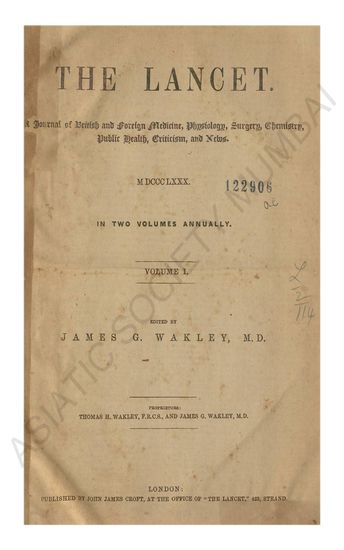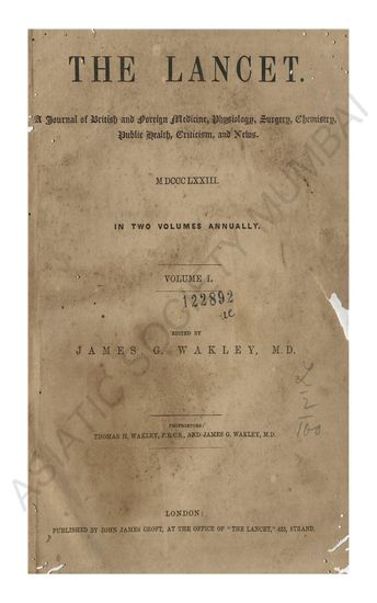| Publisher | : | John James Croft, at the Officie of the Lancet, 423, Strand |