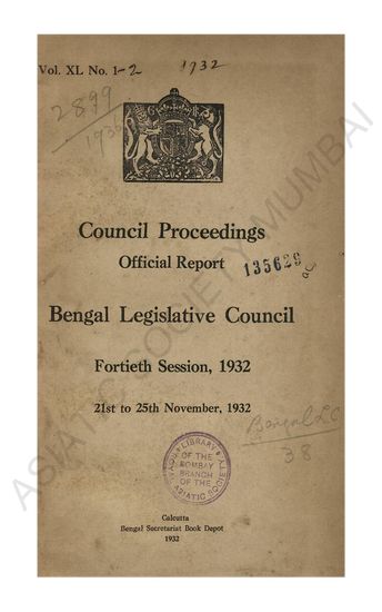 | Subject | : | India--Bengal; Politics and government; India; Bill drafting |