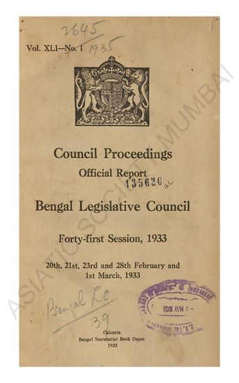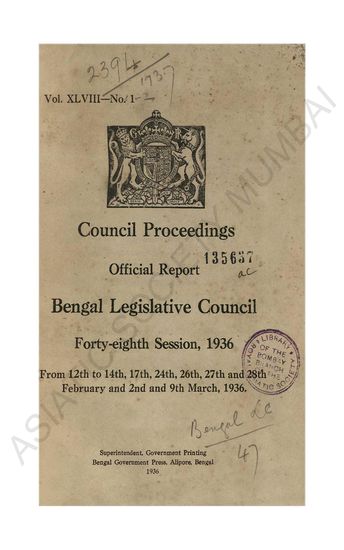 | Subject | : | India--Bengal; Politics and government; India; Bill drafting |