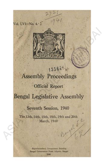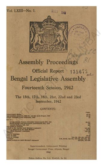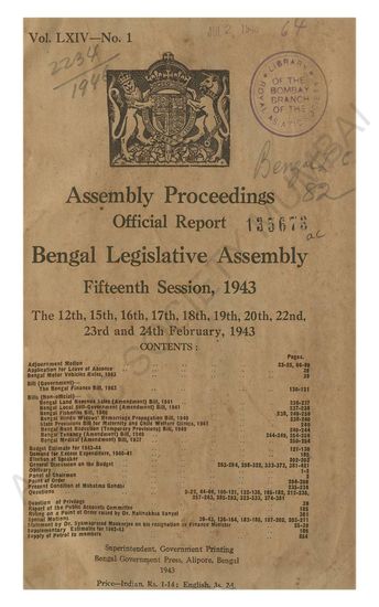 | Subject | : | India--Bengal; Politics and government; India; Bill drafting |
