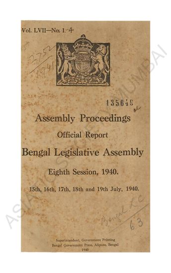 | Subject | : | India--Bengal; Politics and government; India; Bill drafting |