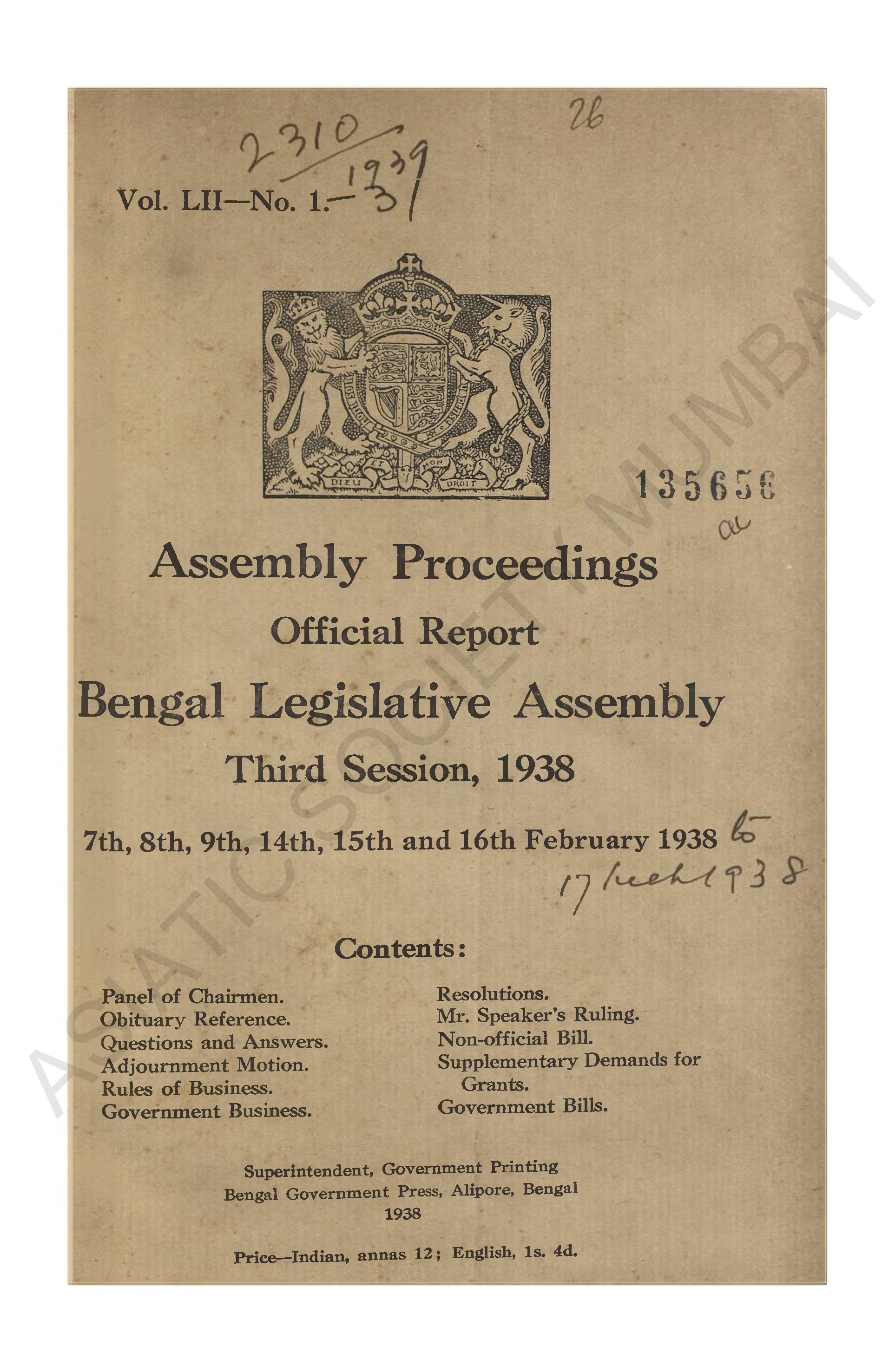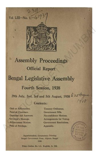 | Subject | : | India--Bengal; Politics and government; India; Bill drafting |