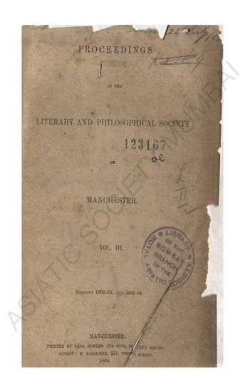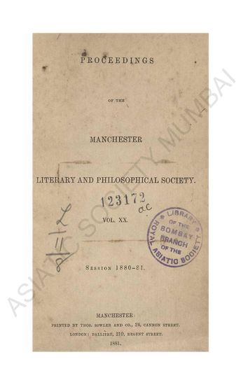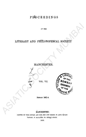 Proceedings of the Literary and Philosophical Society of Manchester. Vol. II. Sessions 1860-61 and 1861-62.