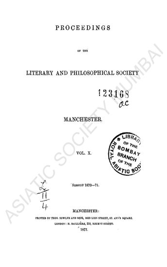 Memoirs of Proceedings of the Manchester Literary and P ...