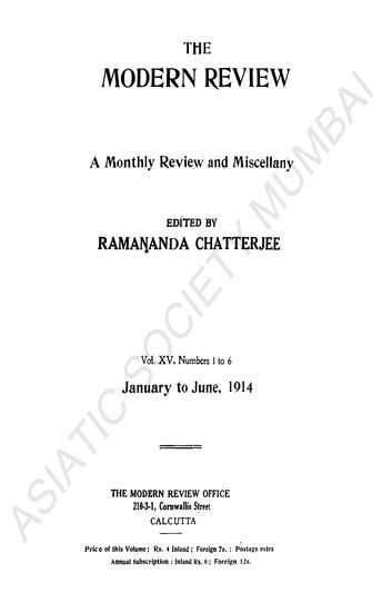 Modern Review a Monthly Review and Miscellany Vol XV. N ...