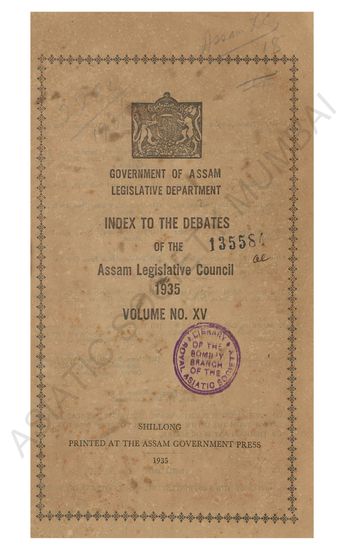 Index to the Debates of the Assam Legislative Council 1937 volume I.