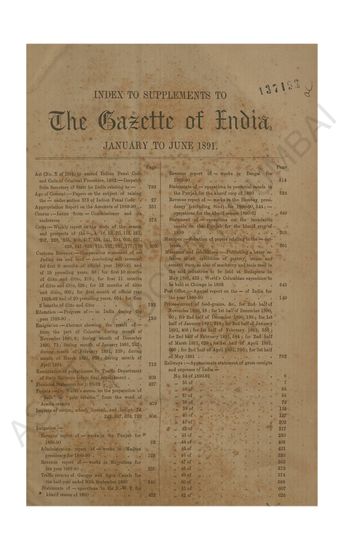 Index to Extra Supplements to the Gazette of India, Jan ...