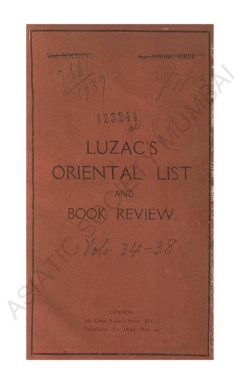 Luzac 's Oriental List and Review Quarterly. Vol. XXXIX ...
