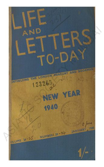 Life and Letters to-Day, New Year 1940. Volume XXIV-XXV ...