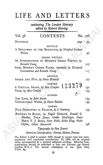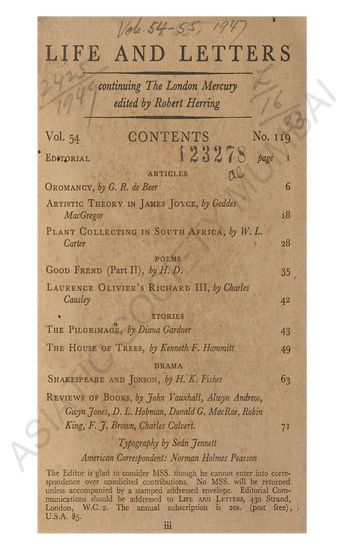 Life and Letters, and The London Mercury and Bookman, Vol. XLVIII. January, 1946.