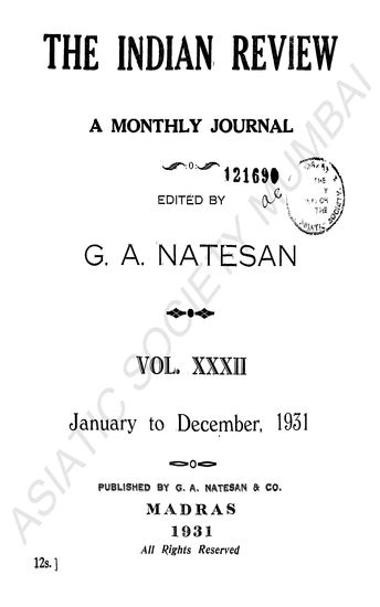 Indian Review A Monthly Journal. Vol XXXII. January - D ...