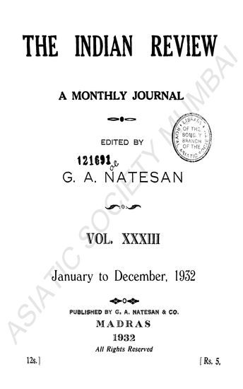 Indian Review A Monthly Journal. Vol XXXIII. January - ...