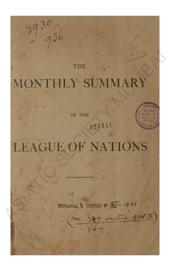 Monthly Summary of the League of Nations Vol XI January ...