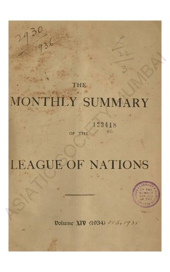 Monthly Summary of the League of Nations Vol XIV 1933.