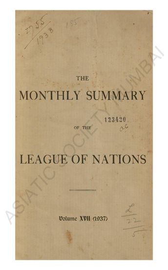 Monthly Summary of the League of Nations Vol XVII 1937.