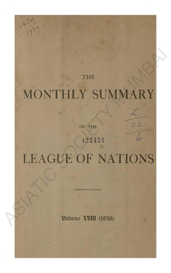 Monthly Summary of the League of Nations Vol XVIII 1938 ...