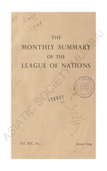 Monthly Summary of the League of Nations Vol XIX Januar ...