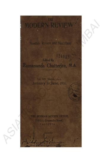 Modern Review a Monthly Review and Miscellany Vol XIX. ...
