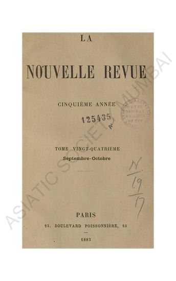 La Nouvelle Revue Cinquieme Annee Tome Vingt-Quatrieme ...
