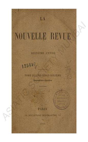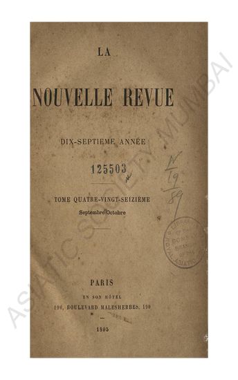 La Nouvelle Revue Vingti-unieme Annee Tome XVIII Sep-Oc ...