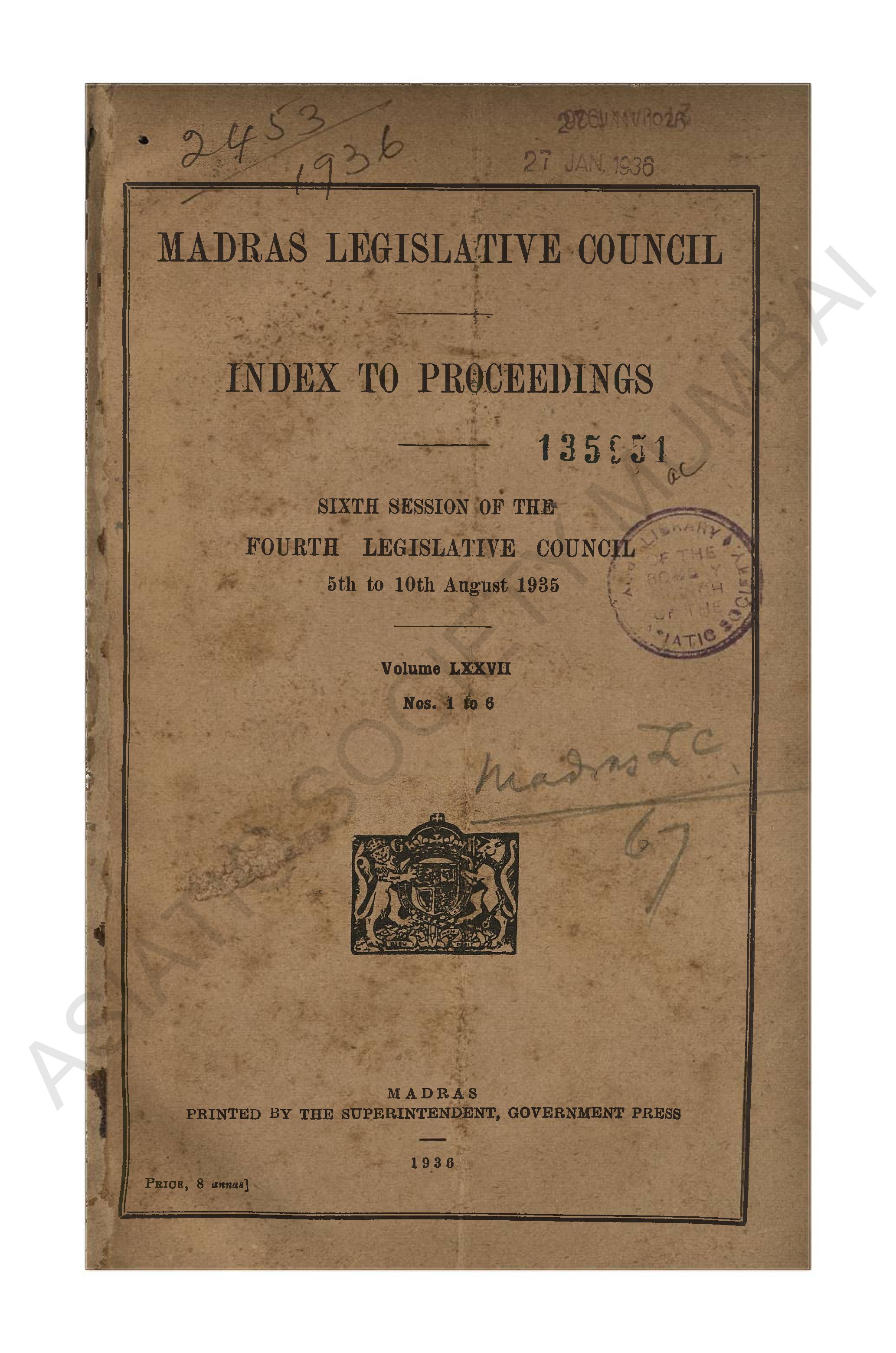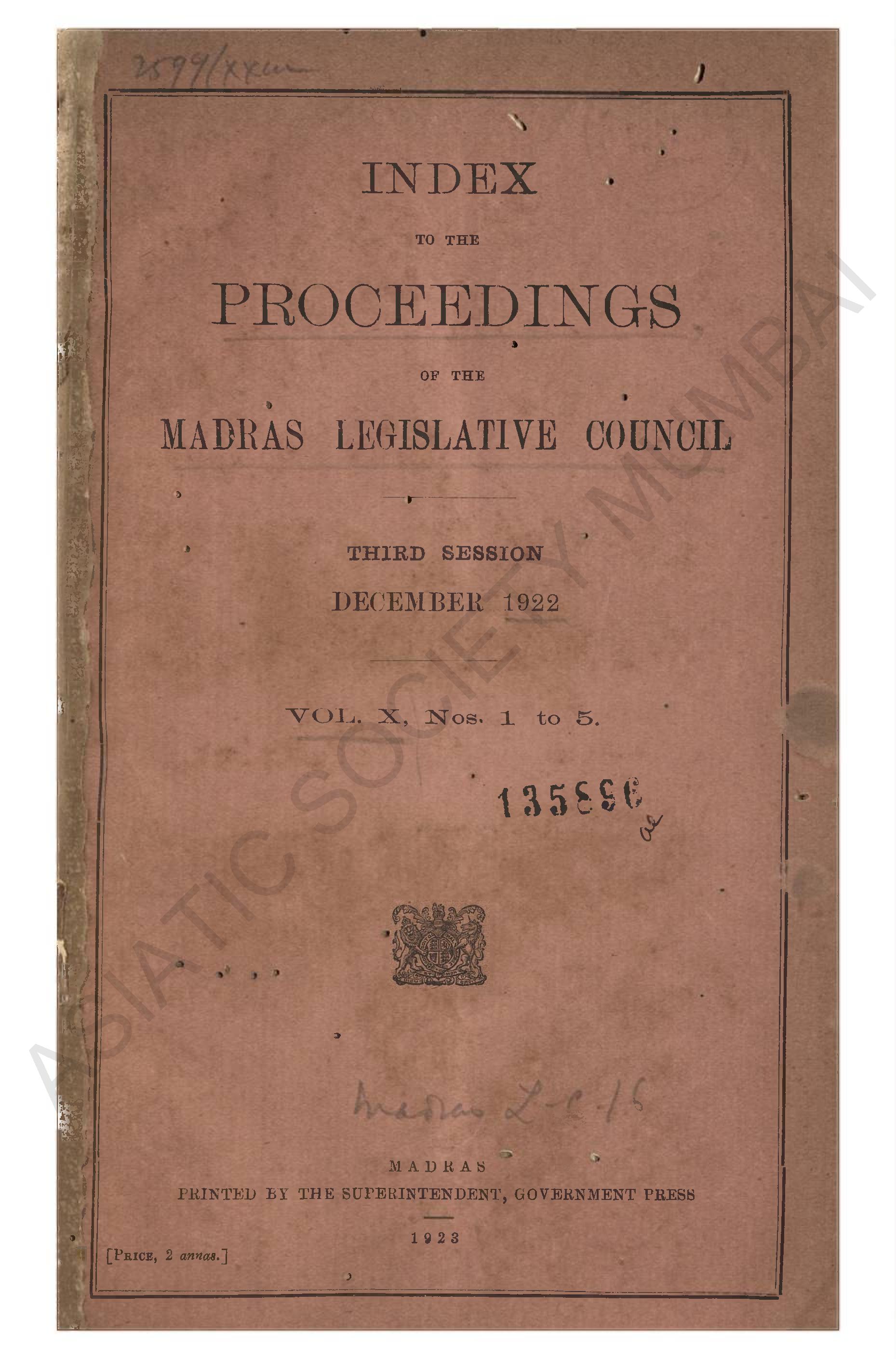 Madras Legislative Council Index to Proceedings. Sixth ...