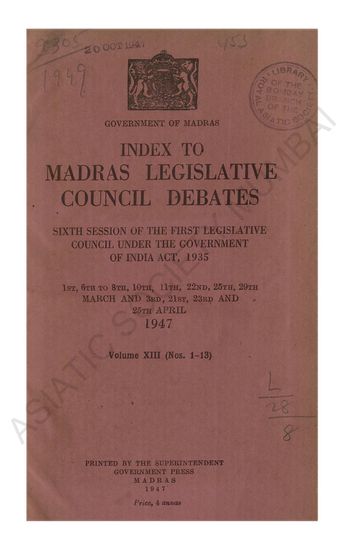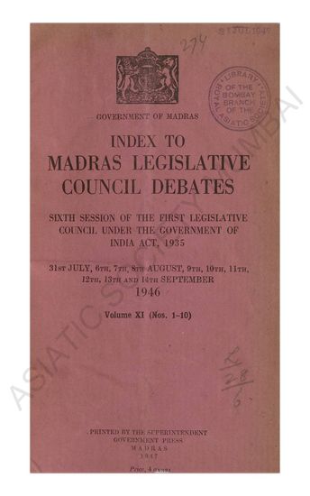 Index to Madras Legislative Council Debates Sixth sessi ...