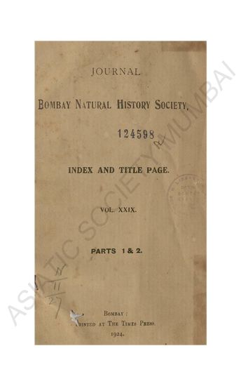 Journal of the Bombay Natural History Society Vol XXIX.