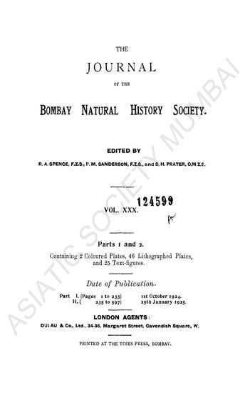 Journal Bombay Natural History Society Vol XXX.