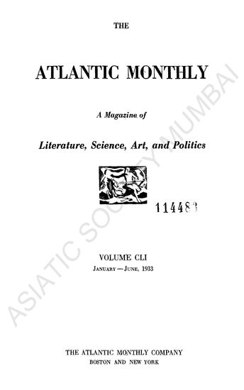 The Atlantic Monthly, Volume CLI, January-June, 1933.