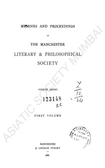 Memoirs of Proceedings of the Manchester Literary and P ...