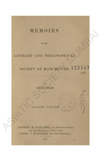 Memoirs of Proceedings of the Manchester Literary and Philosophical Society. Fourth Series. Vol. IV.