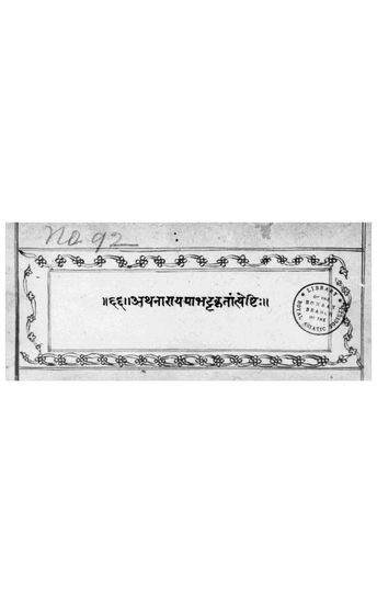 S’raddhasagara is another work of our author which is mentioned in this work. Prayogasagara is another name of our work.For a list of authorities quoted in this work,see I. O., No. 1634. I may add the following :— I believe that I. O., Nos. 1634 and 1636 are two parts of one and the same book. The numbers of the folios show the same. The author'ssuggestion that No. 1634 is an abridgment of No. 1636 is not probable. See next number. |