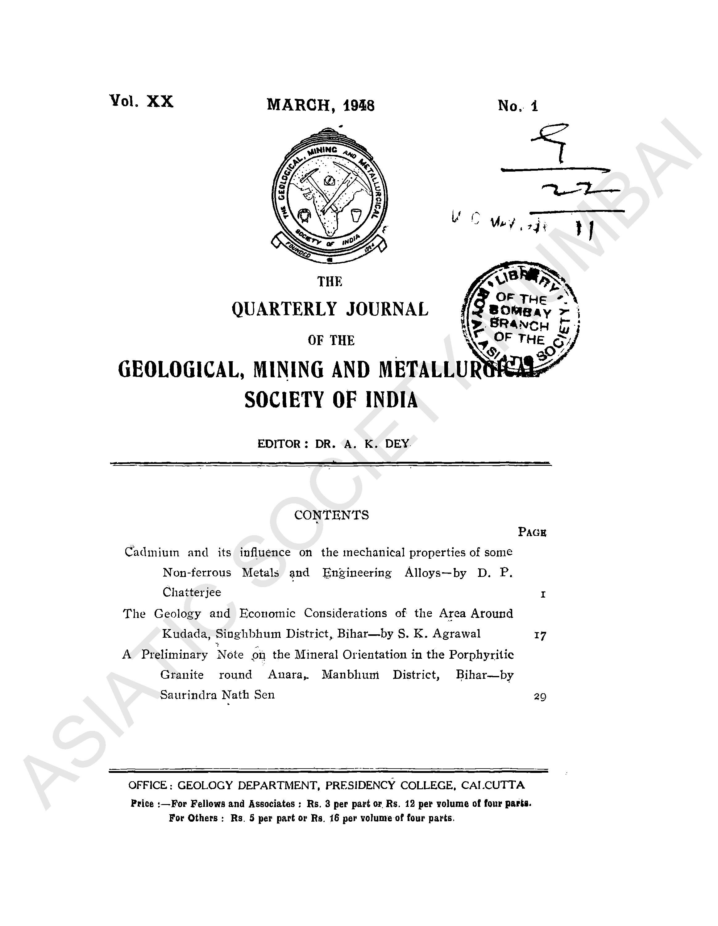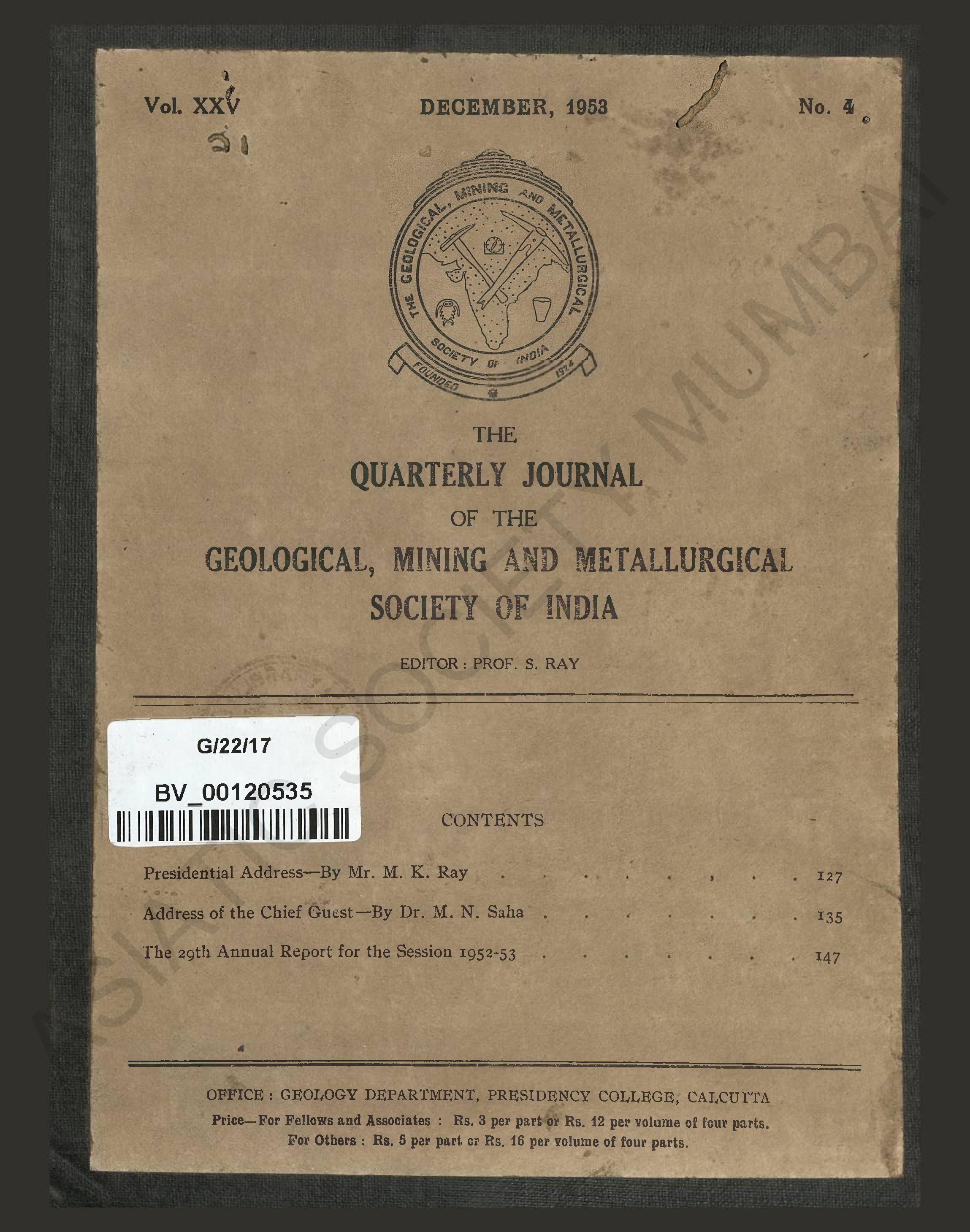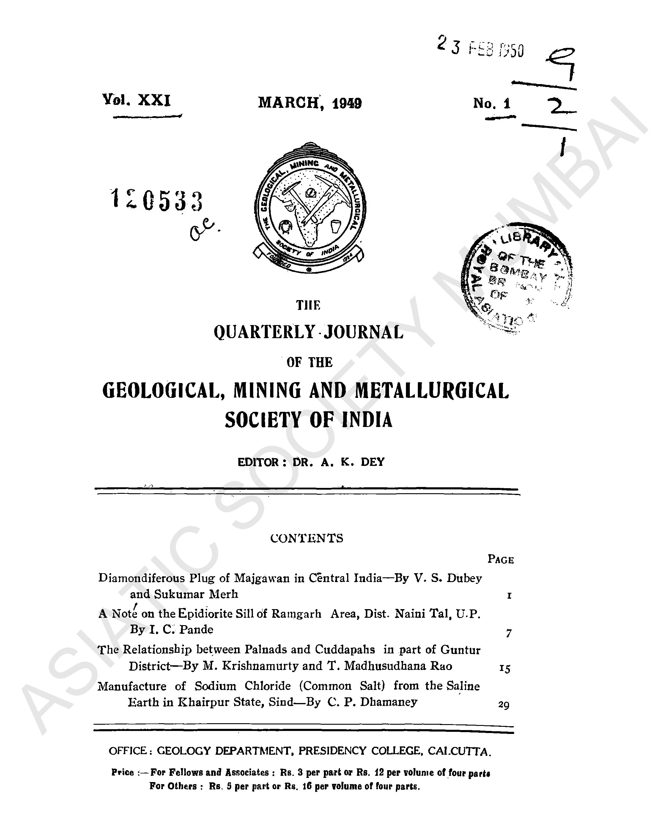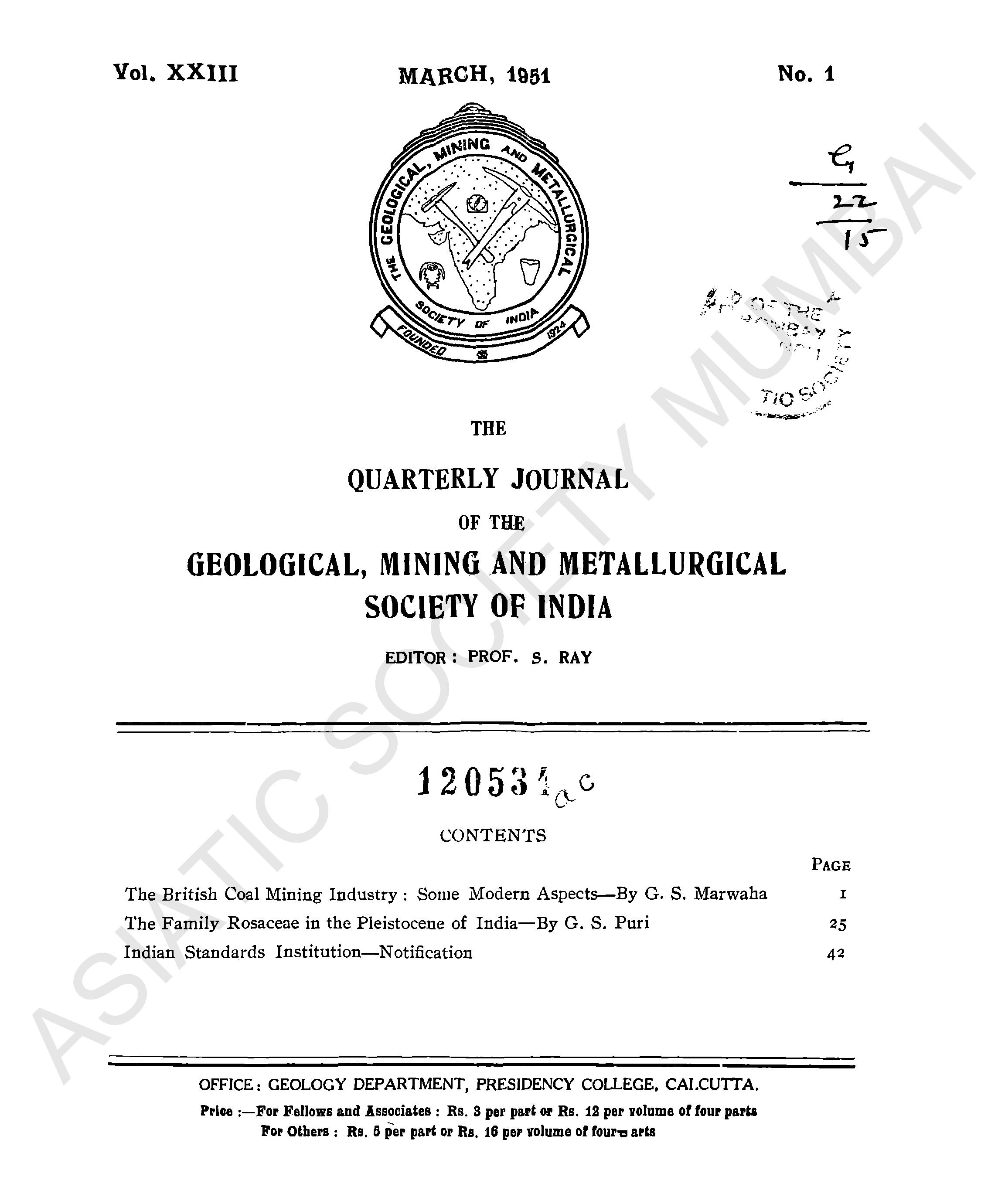 | Subject | : | India; Geology; Mineral industries; Geology--Societies; etc |