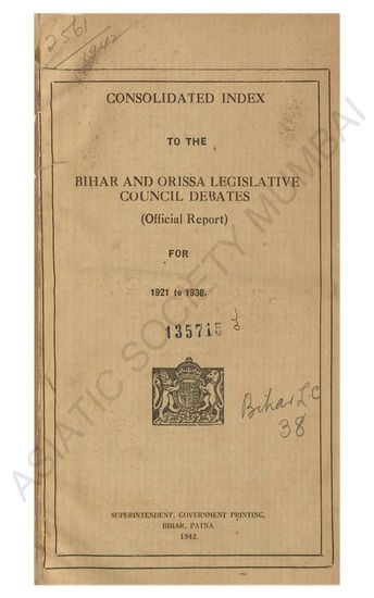 | Subject | : | India--Bihar and Orissa; Politics and government; Bihar and Orissa (India). Legislature. Legislative Council; Law |