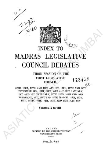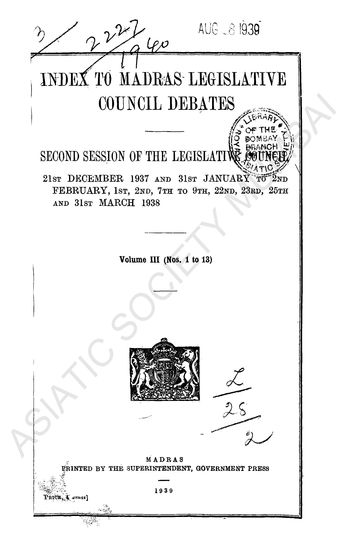 | Subject | : | India--Tamil Nadu; Politics and government; Law |